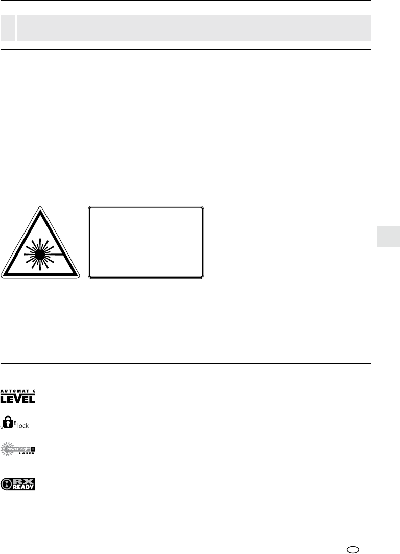 – Margem de autonivelação 3°, exactidão 2 mm / 10 m
