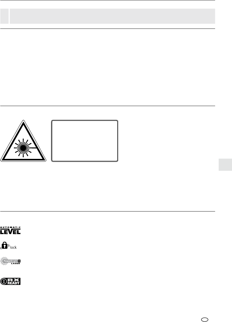 – Selvnivelleringsområde 3°, Nøyaktighet 2 mm / 10 m