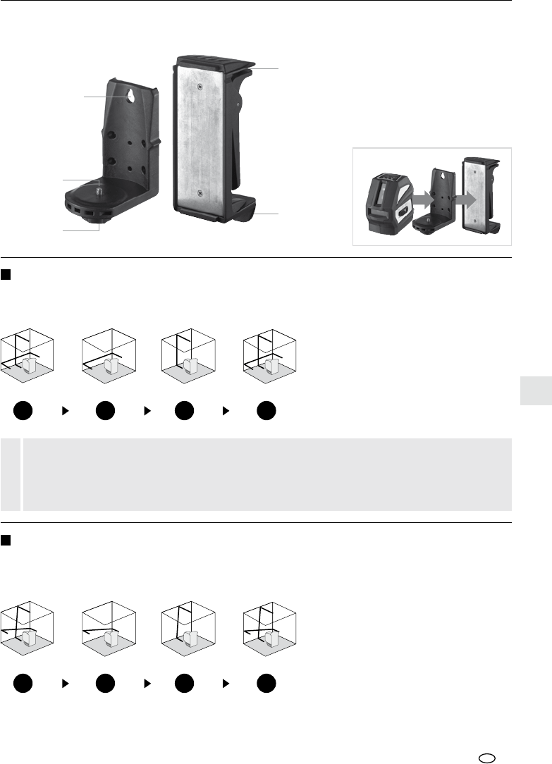 Nå kan apparatet legges på skjeve flater og i hellinger. I denne modus posisjoneres ikke laserlinjene