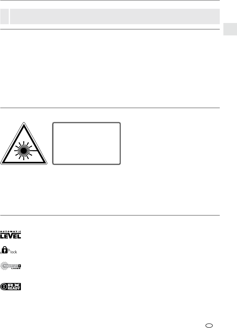 – Automatic levelling range 3°, accuracy 2 mm / 10 m