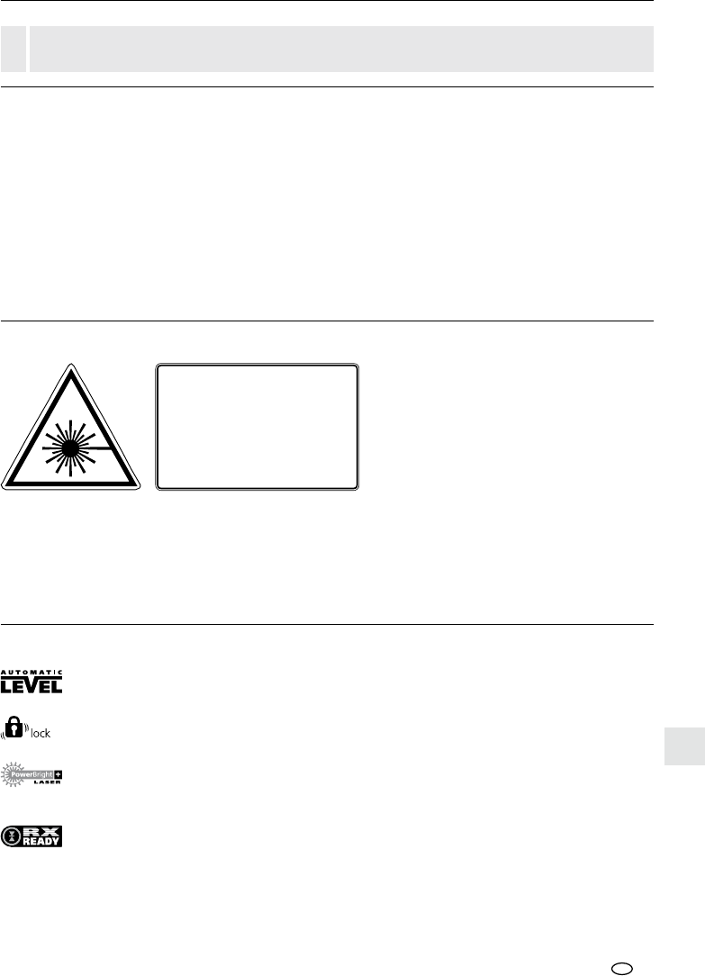 – Automātiskas nolīmeņošanās diapazons 3°, Precizitāte 2 mm / 10 m