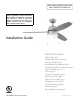 READ THESE INSTRUCTIONS AND SAVE THEM FOR FUTURE USE Federal regulations require ceiling fans with light kits manufactured or imported after January 1, 2009, to limit total wattage consumed by the light kit to 190W. Therefore, this fan is equipped with a wattage limiting device. Installation Guide Table of Contents: Safety Tips. pg. 1 Unpacking Your Fan. pg. 2 Parts Inventory. pg. 2 Installation Preparation. pg. 3 Hanging Bracket Installation. pg. 3 Fan Assembly. pgs. 4 - 5 Wiring. pg. 5 Canopy Assembly.