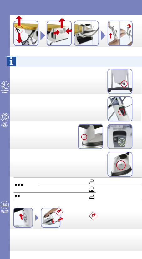 Before ironing, activate the steam button 2–3 times away from the garments (see “Tips and tricks”, pg. 6)
