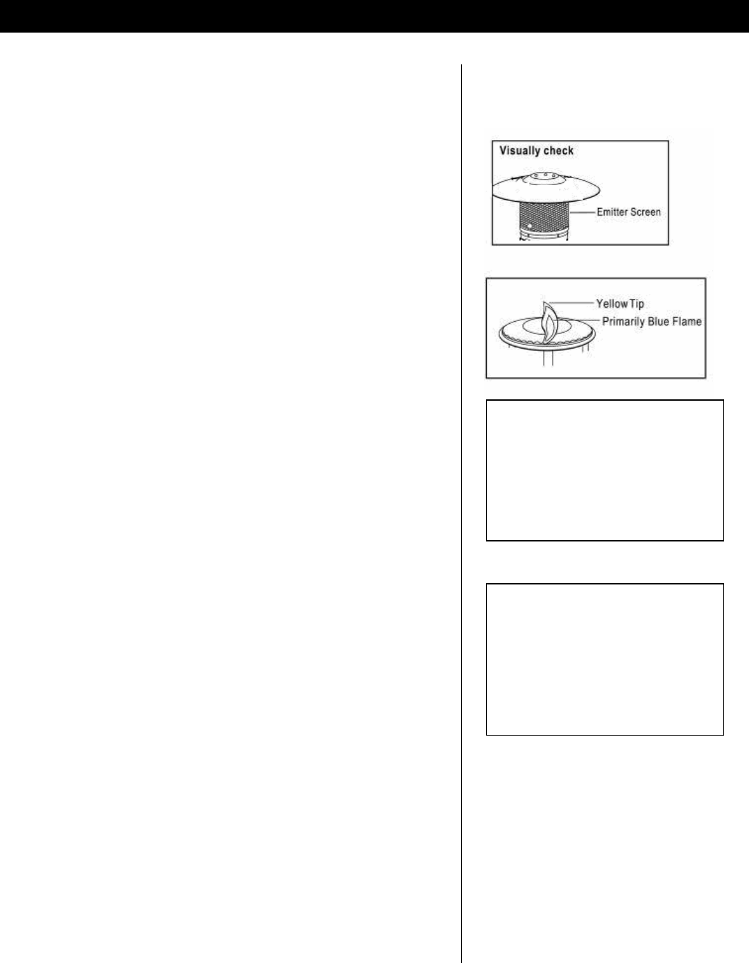 If flame extend beyond the emitter grid or there are black spots that have