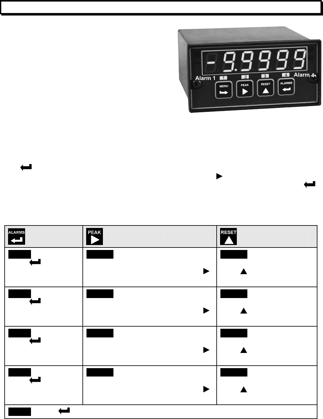 The (Alarms) key can be used to step through and view setpoints while the meter conti-