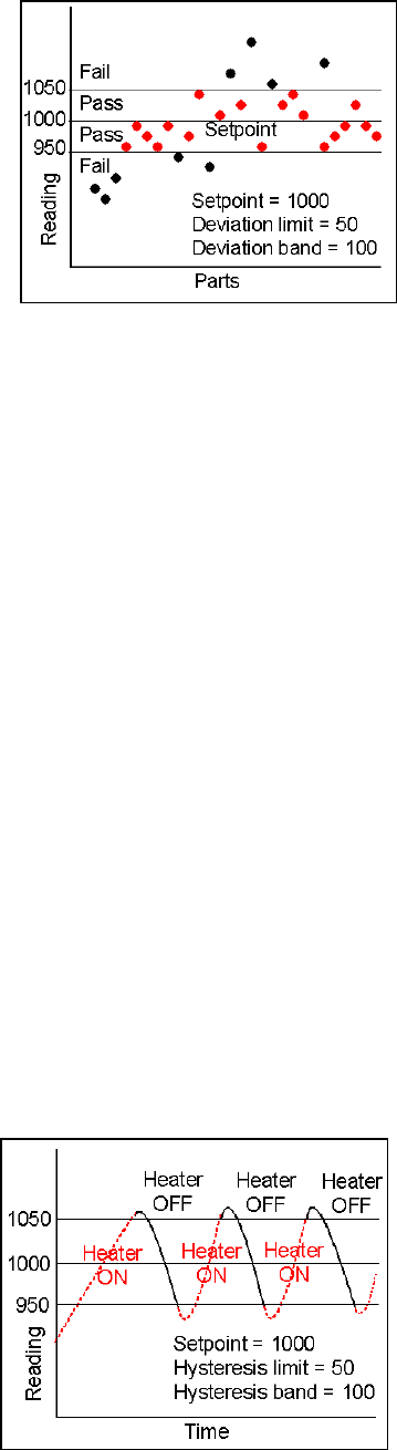 Split hysteresis, where the setpoint is at the center of a symmetrical hysteresis