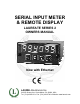 . PRODUCT INTRODUCTION Our Serial Input Meter (or remote display) accepts serial data from computers, programmable controllers, instruments or other devices to provide a six-digit numeric display from -999,999 to +999,999. It can also provide relay closures and analog outputs based on the received serial data. Its appearance matches that of our 1/8 DIN digital panel meters, counters and timers. The Serial Input Meter is a 6-digit counter without a signal conditioner board.
