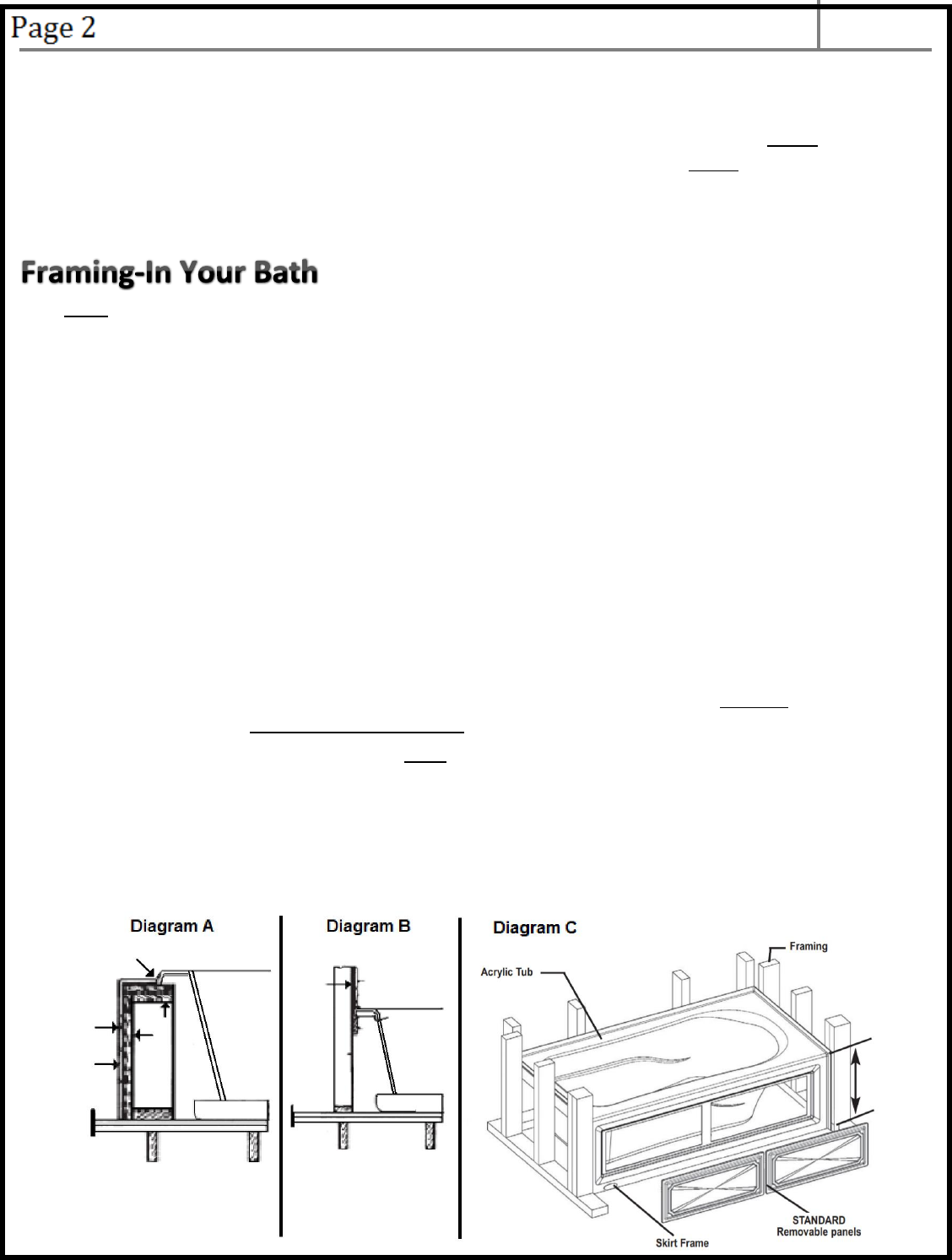 ceiling below the bathtub. See Diagram C for instructions for the access panel provided on the skirted tub.
