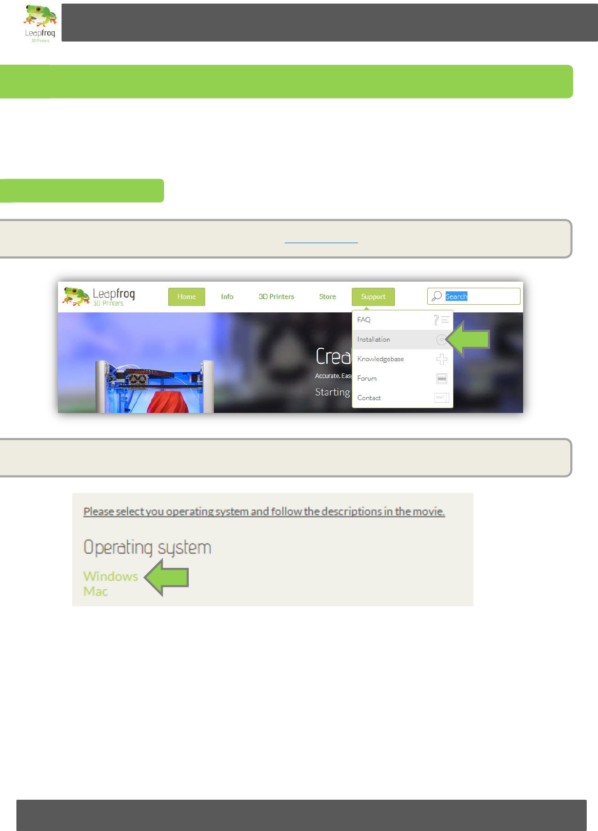 Open the Internet browser and go to www.lpfrg.com > Support” > “Installation”.