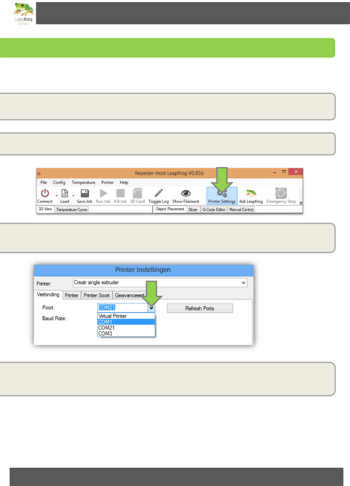 By clicking the connect button as indicated in the next screenshot you can connect the printer. It