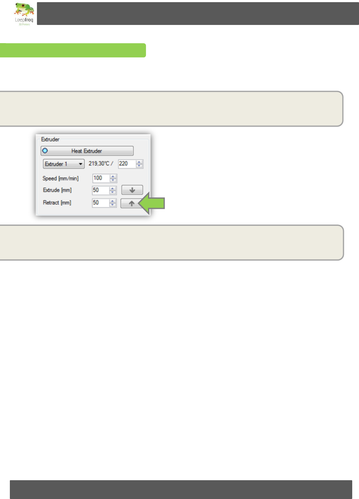 Heat the extruder, when it is heated to 220 degrees click the Retract button” until the filament