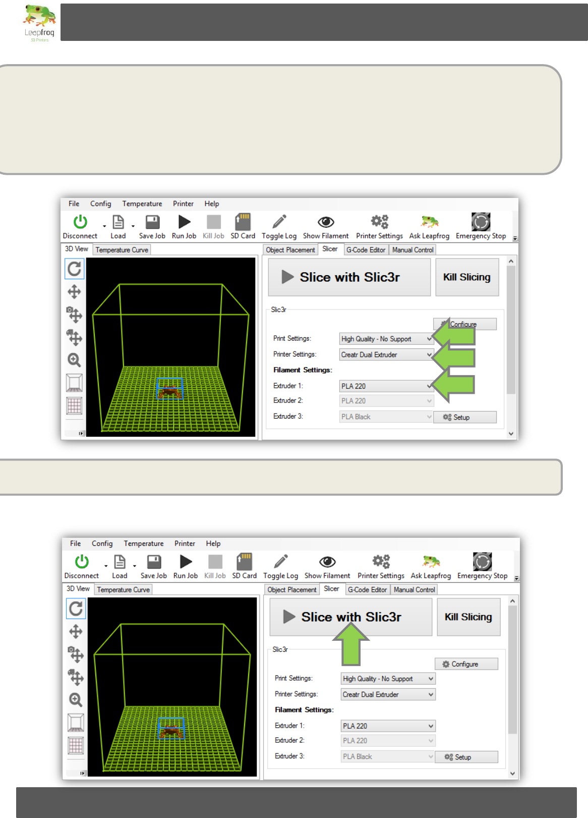 Slice your STL file by clicking the Slice with Slic3r” button.