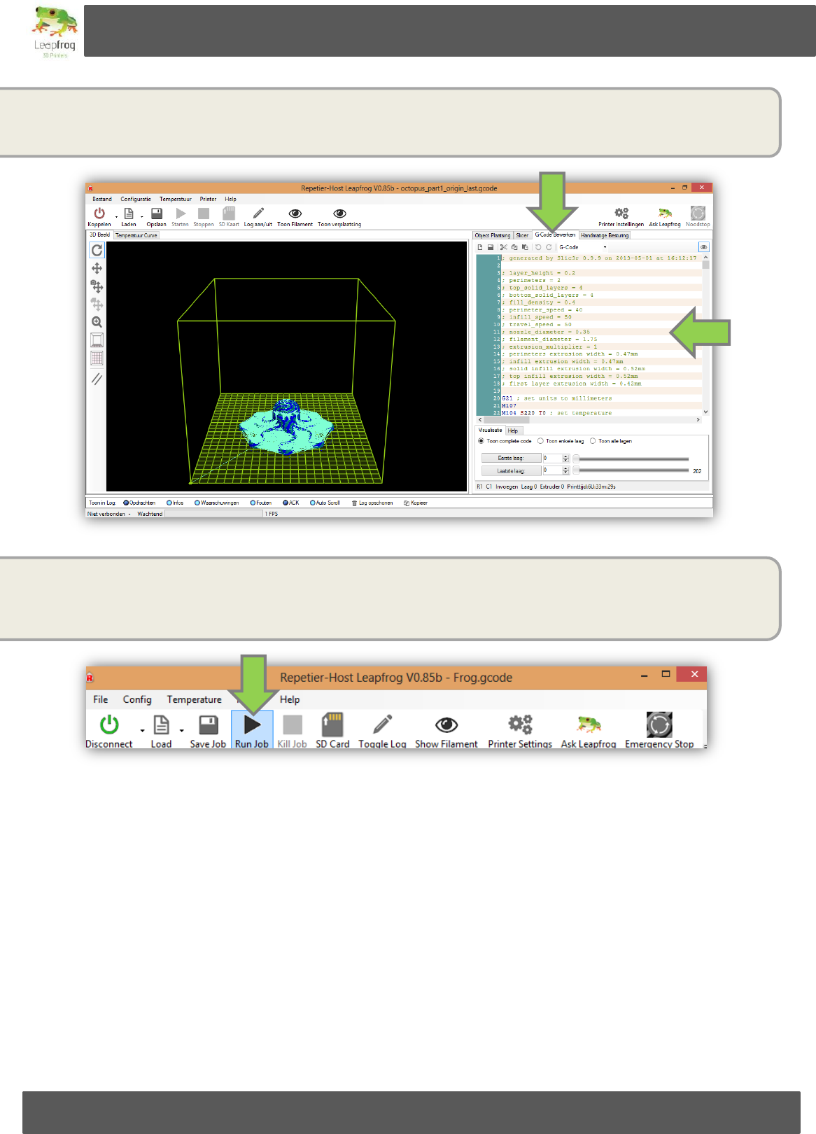 the X-, Y- and Z-axis. Your printer will start printing! On the bottom of the Repetier-Host Leapfrog