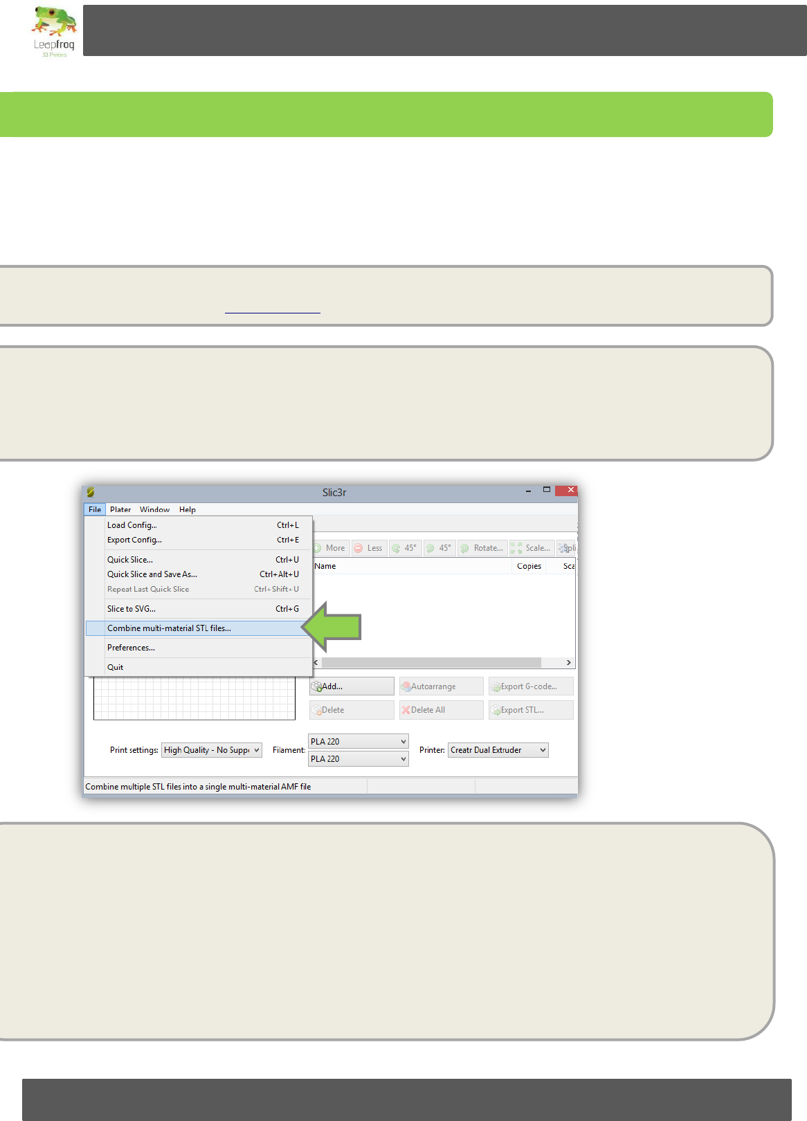 color. These two files have to be combined into one file by Slic3r. Follow the instructions below: