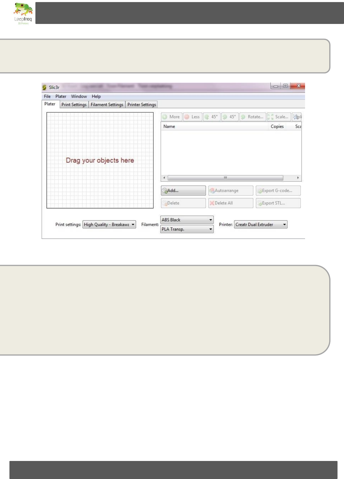 Now load the “.amf file in Slic3r software by clicking “Add..”. When you have added the “.amf