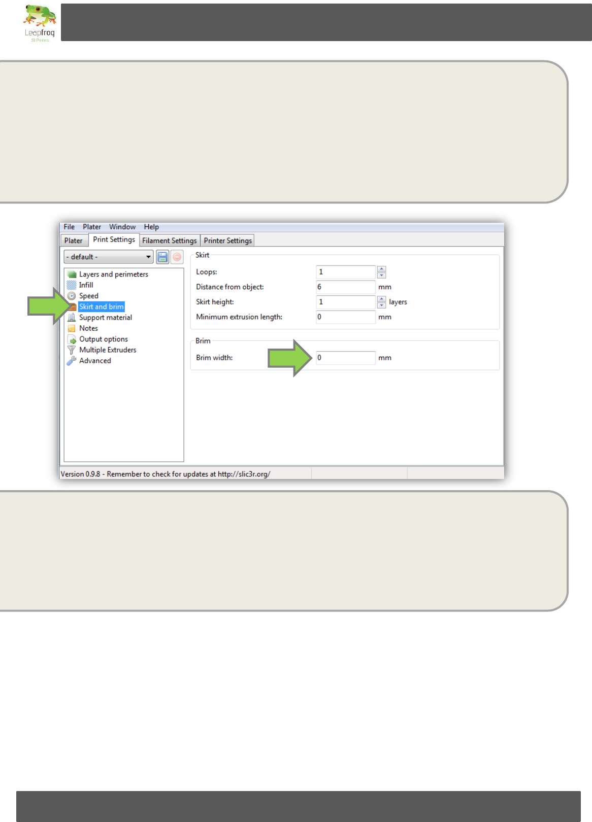 Print Settings”Skirt and brim” and change the