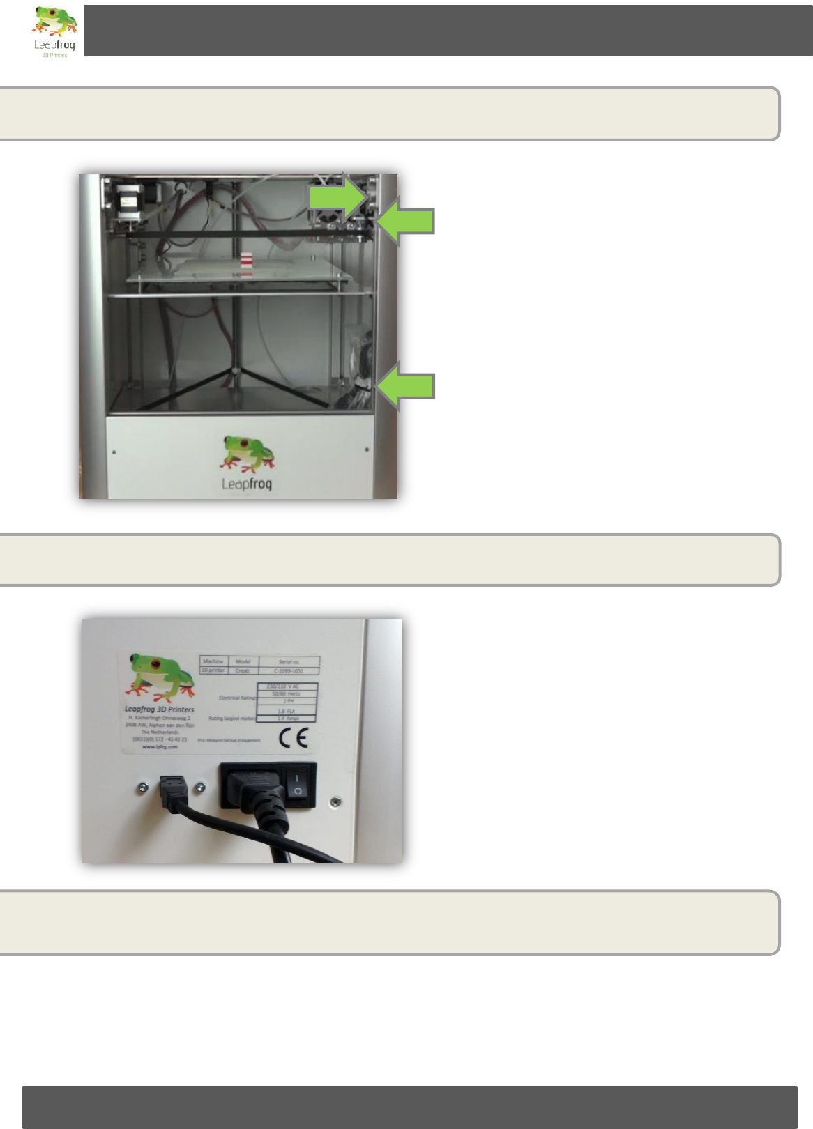 Insert the power cord and USB-cable in the backside of the Creatr.