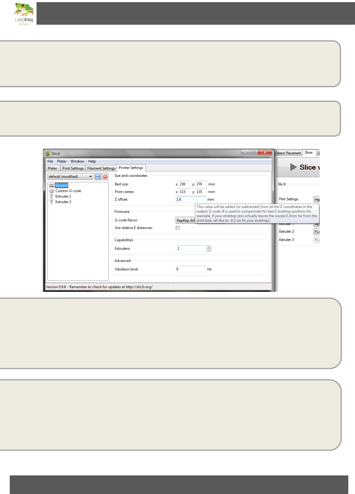 slic3r settings. In Repetier-Host go to the slicer tab and select configure to open the slic3r settings