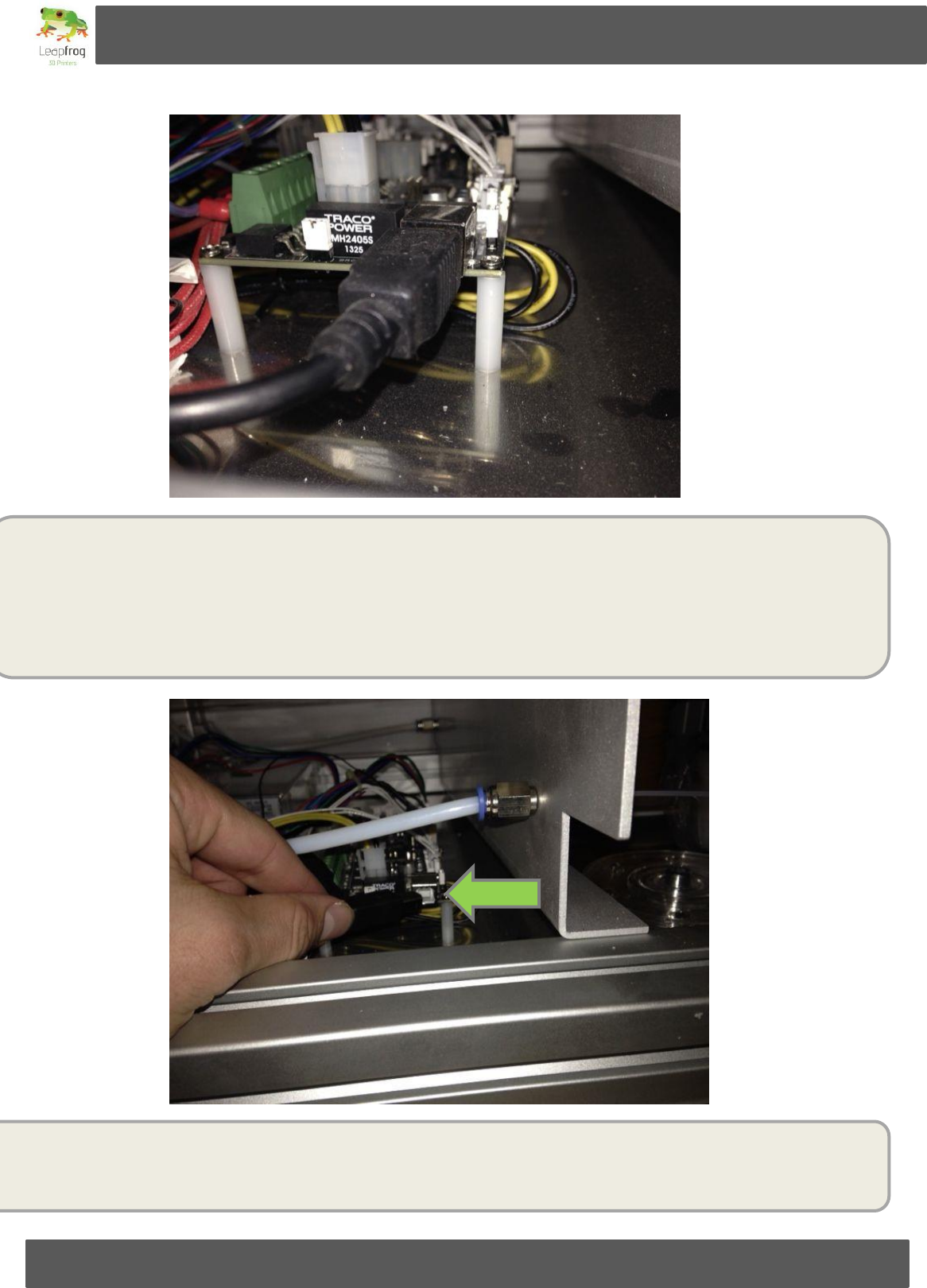 You have now gained access to the Leapfrog electronics board at the side of its usb entrance. If