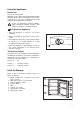INS TR UCTIONS F OR THE USER General Information This appliance is designed for the refrigeration of food in a domestic home. To ensure correct operation, the appliance should be located where the ambient temperature is between 16-32 °C. Description of the Appliance 1. Glass shelf 10. Bottle shelf 2. Defrost water drain 11. Egg tray 3. Salad drawer 12. Air circulation 4. Databadge 13. Air vent 5. Adjustable feet 14. Condenser 6. Butter compartment 15. Evaporator tray 7.