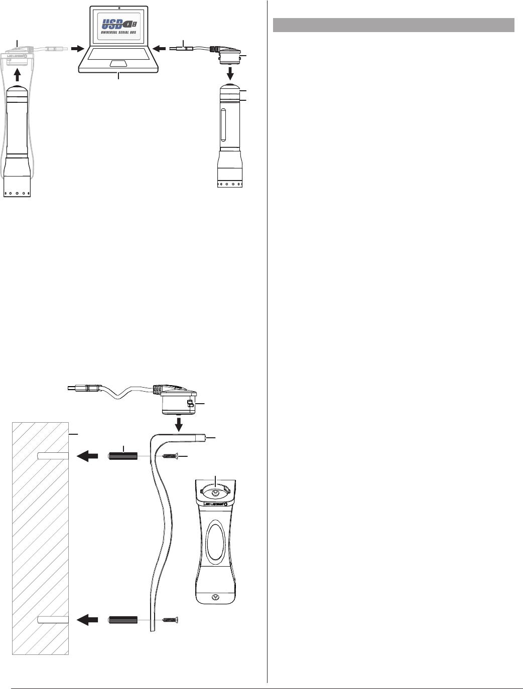 1. Wandhalterung ④ an die Wand ① anhalten und