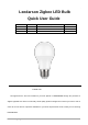 Leedarson Zigbee LED Bulb Quick User Guide Draft Ver. V V1.0 Description Time 2019.2 THANK YOU We appreciate the trust and confidence you have placed in LEEDARSON through the purchase of Zigbee Light Bulb. We strive to continually create quality products designed to enhance your home. Visit us online to see our full line of products available for your home improvement needs.