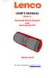2014010 CSR8635 V1.1 USER’S MANUAL Boost-4 Bluetooth Stereo Speaker with Aux Input & NFC Splash-proof For more information: www.lenco.