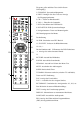 Die grüne, gelbe und blaue Taste sind in diesem Fall ungültig.) 3. SYS-MENU: Systemeinstellungsmenü. 4. INPUT: Betätigen Sie diese Taste zur Anzeige des Eingangssignalmenüs. 1 5. CH+/-: Tasten zur Kanalauswahl. 6. VOL+/-: Einstellen der Lautstärke. 2 7. DVD: Umschalten zum DVD-Betrieb 8. DVD-SETUP: DVD-Systemeinstellungen 9. Navigationstasten: Tasten zur Menünavigation. 3 OK: Bestätigungstaste für Menüs. SYS-MENU 5 6 INPUT 4 8 DVD 7 Fernbedienung 10. DVB: Umschalten zum DTV-Betrieb 11.