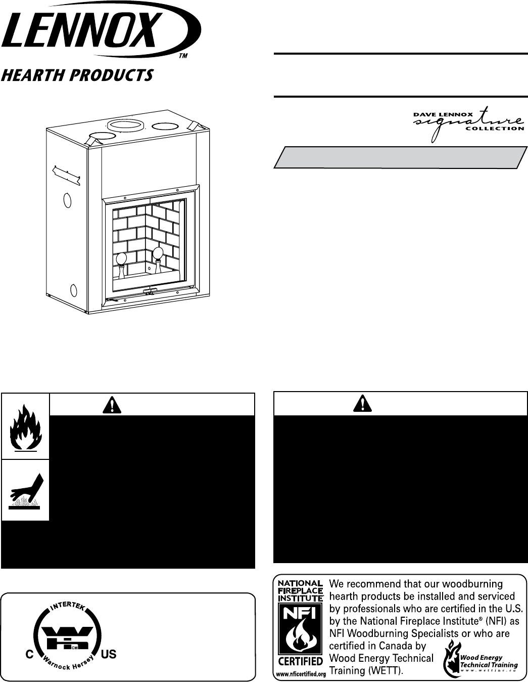Warranty Your fireplace is covered by a limited warranty. Please read the warranty to be familiar with its coverage. Retain this manual. File it with your other documents for future reference. Product reference information We recommend that you record the following important information about your fireplace. Please contact your Lennox Hearth Products dealer for any questions or concerns. For the number of your nearest Lennox Hearth Products dealer, please call 1-800-9-LENNOX.