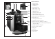 Control elements 11 22 1. Rotary Switch 13 2. Illuminated ring 3. ON/OFF key 4. Programming key 5. Draw-off key 1 cup Rotary Switch 6. Draw-off key 2 cups 12 10 9 13 3 4 5 6 7 8 7. Maintenance key 8. Steam pre-selection key 9. Display dialog system 10. Water tank with carrying handle 14 2 11. Filler funnel for pre-ground coffee: 12. Bean tank cover 1 13. Aroma preservation cover 14. Steam/hot water draw-off valve 15/16 17 18 15. Replaceable 2-stage frothing jet see Fig 6 16.