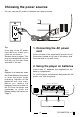 Connect the supplied AC power cord or batteries (see page 14).