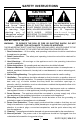 SAFETY INSTRUCTIONS CAUTION RISK OF ELECTRIC SHOCK DO NOT OPEN The lightning flash and arrow head within the triangle is a warning sign alerting you of dangerous voltage inside the product. CAUTION: TO REDUCE THE RISK OF ELECTRIC SHOCK, DO NOT REMOVE COVER (OR BACK). NO USER SERVICEABLE PARTS INSIDE. REFER SERVICING TO QUALIFIED SERVICE PERSONNEL. The exclamation point within the triangle is a warning sign alerting you of important i n s t r u c t i o n s accompanying the product.