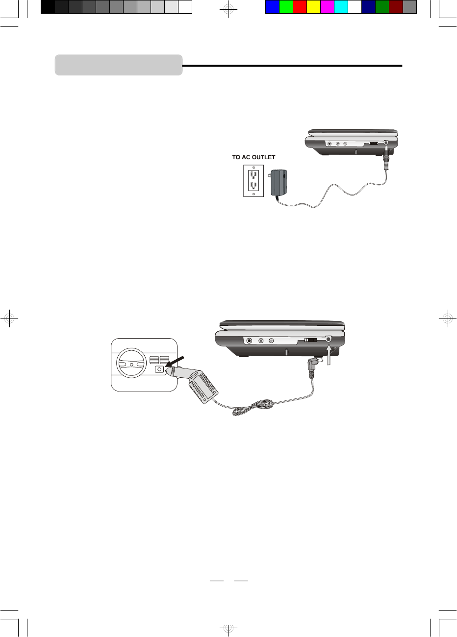You can power this portable DVD player by connecting the AC adaptor, the car adaptor or the