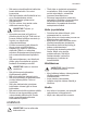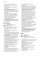 Leonard 35 • Fetter och olja kan frigöra lättantändliga ångor när de värms upp. Håll flammor eller uppvärmda föremål borta från fetter och oljor när du lagar mat med dem. • Ångorna som frigörs i mycket het olja kan orsaka självantändning. • Redan använd olja, som kan innehålla matrester, kan orsaka brand vi lägre temperatur än olja som används för första gången. • Placera inga lättantändliga produkter eller föremål som är fuktiga med lättantändliga produkter i, nära eller på tvättmaskinen.