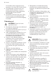 Leonard 5 • Fedtstoffer og olie kan udsende brændbare dampe, når de opvarmes. Hold flammer eller opvarmede genstande væk fra fedtstoffer og olie, når du tilbereder mad med dem. • De dampe, som meget varm olie udsender, kan forårsage selvantændelse. • Brugt olie, der kan indholde madrester, kan forårsage brand ved en lavere temperatur end olie, der bruges for første gang. • Undlad at bruge brændbare produkter eller ting, der er fugtet med brændbare produkter, i apparatet eller i nærheden af eller på dette.