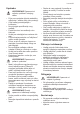 Leonard 33 • Naprave ne uporabljajte kot delovno površino ali za odlaganje. • Ko daste hrano v vroče olje, to lahko brizgne. OPOZORILO! Obstaja nevarnost požara in eksplozije. • Maščobe in olja lahko ob segrevanju sproščajo vnetljive hlape. Plamenov ali segretih predmetov ne približujte maščobam in olju, ko kuhate z njimi. • Hlapi, ki jih sproščajo zelo vroča olja, lahko povzročijo nepričakovan vžig.