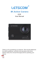 4K Action Camera Q3H User Manual Thank you for purchasing our products. This manual addresses the safety guidelines, warranty and operating instructions. Please review this manual thoroughly before operating your device.