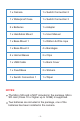 Package Contents Waterproof Case Handlebar Mount Base Mount 1 Base Mount 2 Fixed Base Switch Connection 1 Switch Connection 2 Switch Connection 3 Adapter Clip1 Clip2 Helmet Base Bandages Batteries Stickers Ribbon& Wirerope Back Cover USB Cable Wiper User Manual -1-