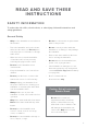 READ AND SAVE THESE INSTRUCTIONS S A F E T Y I N F O R M AT I O N To reduce the risk of fire, electric shock, or other injury, follow all instructions and safety guidelines. General Safety • Only use the humidifier as described in this manual. • Do not use other items as replacement parts for this product. • Place the humidifier and cord so that it will not be knocked over. Do not place near large pieces of furniture or in hightraffic areas. • Do not cover the nozzles while the humidifier is on.