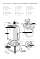 G E T T I N G TO K N O W YO U R S M A R T H U M I D I F I E R A. Nozzles J. B. Nozzle Cover K. Insulation Ring T. Water Tank Cap C. Water Tank Handle L. Transducer U. Silicone Sealing Ring D. Mist Outlet M. Float Housing V. Water Valve E. Water Tank N. Float W. Noise Silencer F. Cleaning Brush O. Mist Tube X. Humidity Sensor G. Cleaning Brush Storage P. Water Tank Windows Y. Aroma Pad H. Base Q. Air Outlet Z. Aroma Box R. Base Chamber AA. Air Inlet I.