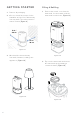 G E T T I N G S TA R T E D 1. Filling & Refilling 1. Remove all packaging. 2. Choose a hard, flat location for the humidifier at least 12 in / 30 cm away from any walls. The surface must be water-resistant. [Figure 1.1] Remove the nozzle cover from the water tank. Use the handle to lift the water tank from the base. [Figure 1.3] 12 in / 30 cm 12 in / 30 cm Figure 1.1 3. Mist should be directed away from walls, furniture, bedding, and appliances. [Figure 1.2] Figure 1.3 2.