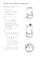 Cleaning (cont.) 5. To descale the humidifier: a. Fill the tank with 3 US cups / 710 mL of distilled white vinegar. [Figure 4.4] c. Place the tank on the base and soak for 15–20 minutes. Vinegar will drain into the base chamber and loosen scale (mineral buildup) in the tank and in the base chamber (including the transducer and float). [Figure 4.6] Figure 4.4 Figure 4.6 b. Replace the tank cap and swish the vinegar around the tank. [Figure 4.5] Figure 4.5 d. Remove the tank and pour out any vinegar.