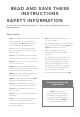 READ AND SAVE THESE INSTRUCTIONS SAFETY INFORMATION To reduce the risk of fire, electric shock, or other injury, follow all instructions and safety guidelines. General Safety • Only use the humidifier as described in this manual. • • Place the humidifier and cord so that it will not be knocked over. Do not place near large pieces of furniture or in high-traffic areas. Do not immerse the humidifier base, power cord, or plug in water.