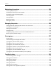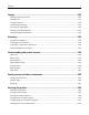 Contents 2 Contents Safety information.......................................................................................7 Learning about the printer...........................................................................9 Finding information about the printer......................................................................................................9 Selecting a location for the printer.......................................................................................................