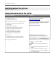 Learning about the printer 9 Learning about the printer Finding information about the printer What are you looking for? Find it here Initial setup instructions: Setup documentation—The setup documentation came with the printer and is also available at http://support.lexmark.com.