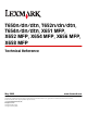 T650n/dn/dtn, T652n/dn/dtn, T654n/dn/dtn, X651 MFP, X652 MFP, X654 MFP, X656 MFP, X658 MFP Technical Reference May 2009 www.lexmark.com Lexmark and Lexmark with diamond design are trademarks of Lexmark International, Inc., registered in the United States and/or other countries. All other trademarks are the property of their respective owners. © 2009 Lexmark International, Inc. All rights reserved.