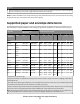 = Supported X = Not supported Printer model T650n/dn/dtn, T652n/dn/dtn, T654n/dn/dtn Key • Priority Install Jog ManualFeed ManualFeedTimeout MediaColor MediaPosition MediaType MediaWeight NumCopies Nup NupDetails • Rows • Columns • Orientation • Border • Order • Type • LandscapeOverride OutputAttributes • 0 - Standard Bin • 1 - Optional Bin 1 • 2 - Optional Bin 2 • 3 - Optional Bin 3 Appendix C: PostScript support 83 X651 MFP, X652 MFP, X654 MFP, X656 MFP, X658 MFP