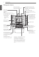 COMPONENTS 7 Use this page to become more familiar with the parts and features of your refrigerator. *The appearance and specifications of the actual product may differ depending on the model. Refrigerator Exterior Handle Filtered Water and Ice Dispenser Dispenses purified water and ice. LED Display Displays the refrigerator and freezer temperature, the water filter condition and the dispenser status. Control Panel Opens and closes the door. Button Refrigerator Preserves food.