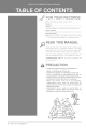 Prior to Operation Prior to for Preparing 1. Contact 2. 3. Use Operation installation an in the power Plug Operation specialist plug properly. for installation. dedicated circuit. a 4. Do not use an extension cord. 5. Do not 6. If the start/stop operation by plugging/unplugging the power cord. cord/plug is damaged, replace it with only an authorized replacement part. Usage 1. a long time may be hazardous to your health. Do not expose plants to direct airflow for a long time.