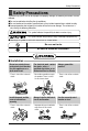 Precauciones de seguridad Precauciones de seguridad Para evitar lesiones al usuario o a otras personas y daños a la propiedad, siga estas instrucciones. ■ Una operaci’on incorrecta por ignorar las instrucciones provocará lesiones o daños. La seriedad se clasifica por las siguientes indicaciones. ADVERTENCIA Este símbolo indica la posibilidad de muerte o de seria lesión. PRECAUCIÓN Este símbolo indica sólo la posibilidad de lesión o daño a la propiedad.